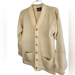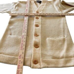 Vintage Cardigan Sweater Acrylic Men's Small Cream Grandpa Grunge Kurt Cobain
