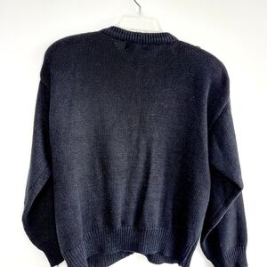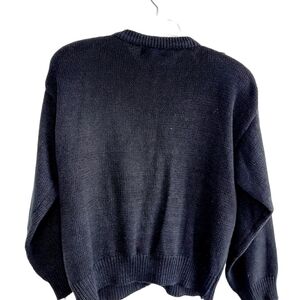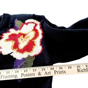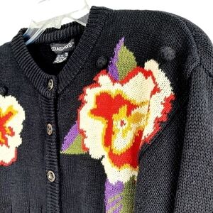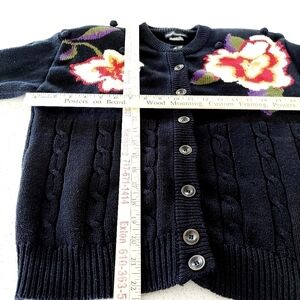Vintage by Counterparts Cardigan Sweater Floral Bobbled Cable Knit Shoulder Pads Navy blue Cotton Ramie size small but Oversized