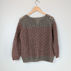Vintage Cardigan Sweater L Gray Pink Open Knit Grandma Cottage Mauve Heritage