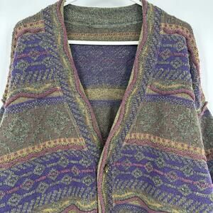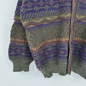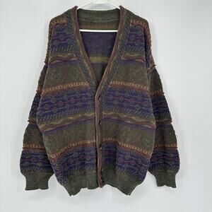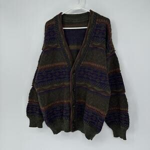 Vintage Cardigan Sweater Mens Extra Large Green Purple Wool Alpaca Made Italy