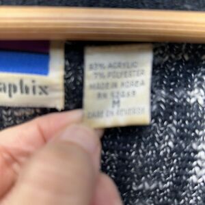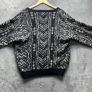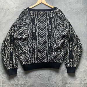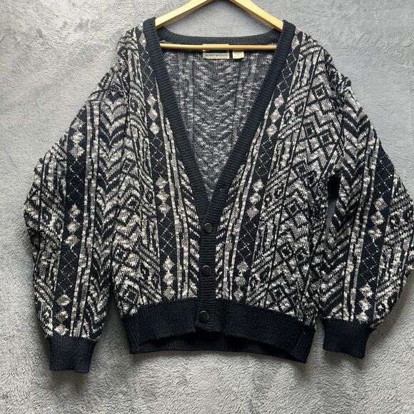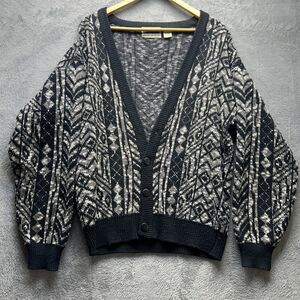 Vintage Cardigan Sweater Mens Medium Black Aztec Knit 80s Preppy Eclectic Y2K