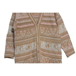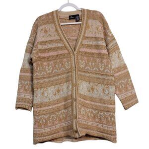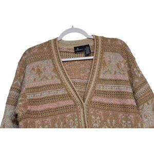 Vintage Cardigan Sweater Oversized Medium Cotton Gold Metallic Holiday Retro 90s