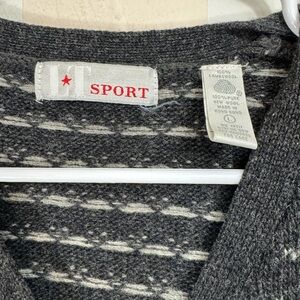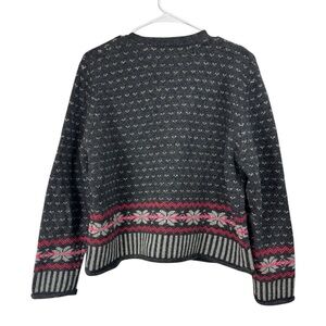 Vintage Cardigan Sweater Size Large 100% Wool Full Zip Knit Fair Isle LT Sport