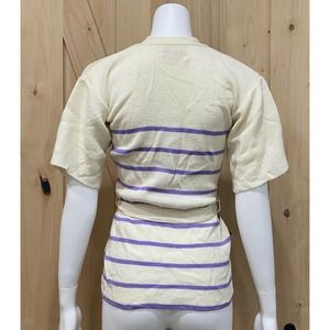 Vintage Sheridan Cardigan Sweater Tie Belt Stripe Embroidered Flower Medium