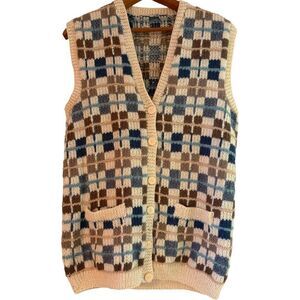 Vintage Cardigan Sweater Vest Women's Small/Medium Wool Hand Knit Blue Cream