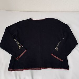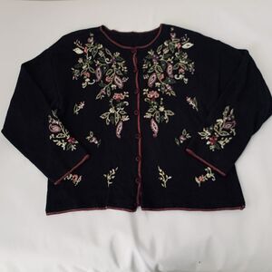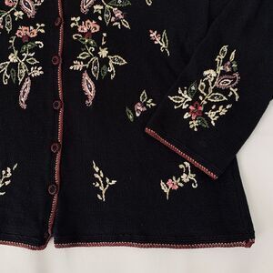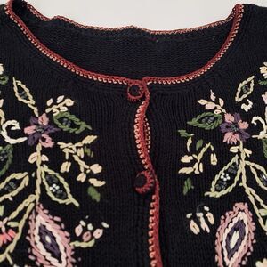 Vintage Cardigan Sweater Women Black Crochet Embroidered Knit Floral Grannycore