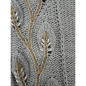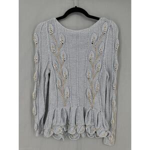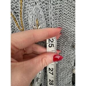 Vintage Cardigan Sweater Womens Small Gray Silver Ruffle Pearl Boho Cottagecore