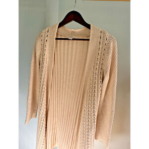 Vintage Cardigan Sweater Womens XS Y2K Cream Open Front Cotton Knit Fisherman