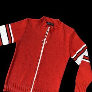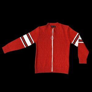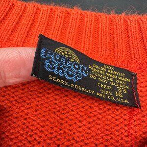 Vintage Cardigan Sweater Womens Zip Up Size Small Red Orange 1970s Sears Acrylic