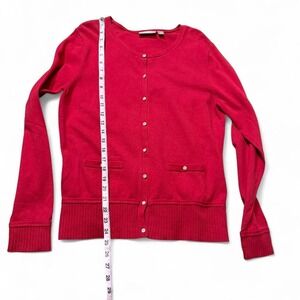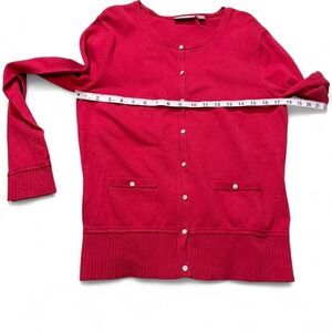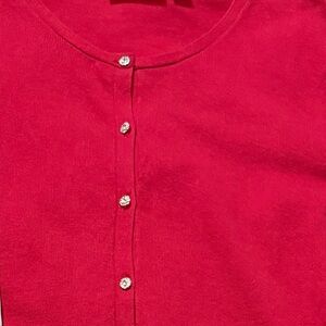 Vintage Cardigan With Rhinestone Buttons. Perfect to add a little sparkle to any outfit. #vintage #redcardigan #winter #rhinestonebuttons #croft&barrow