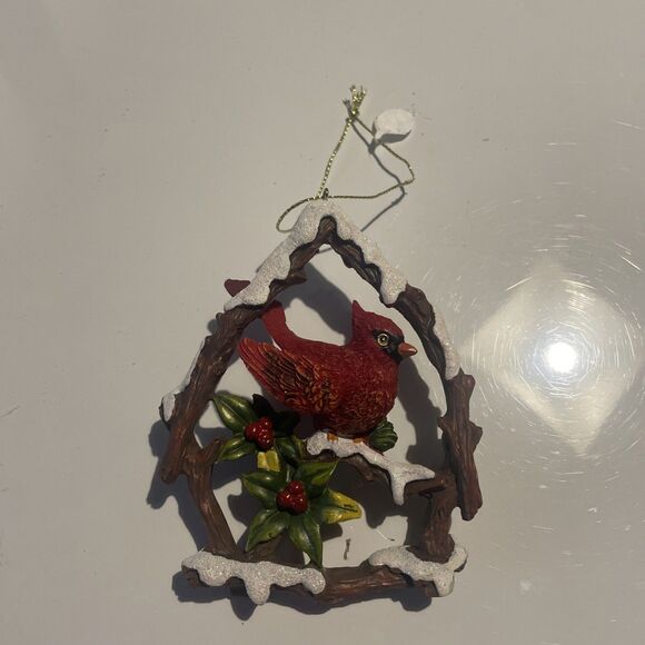 Vintage Cardinal in a Holly Berries Christmas Ornament ...