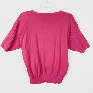 Vintage Career Essentials Hot Pink Cable Knit Short Sleeve Sweater