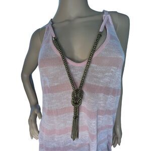 Vintage Caren Sport Knit Loose Fit Pink Striped Tank With Attached Necklace