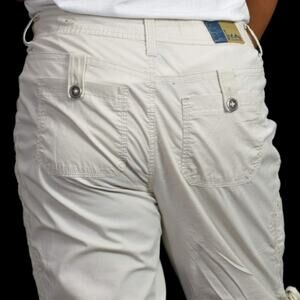 Vintage Cargo Capri Shorts Beige Bermuda Low Rise Embroidery Ruched Y2K Size 10