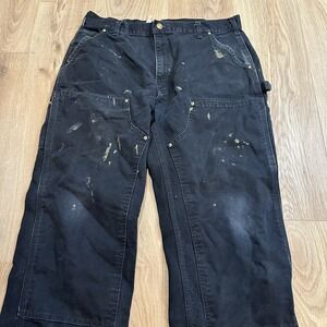 Vintage Carhartt B01 Faded Black Double Knee Pants Distressed Patina 36X32 USA