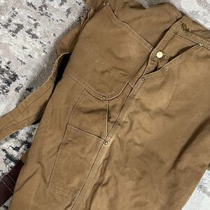 Vintage Carhartt Bib Carpenter Overalls Mens 46x34 Brown Duck Double Knee USA