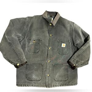 Vintage Carhartt Blanket Lined Chore Coat Heavily Distressed Brass Button XL