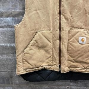 Vintage Carhartt Casual Zip Up Vest Jacket Tan Mens 2XL