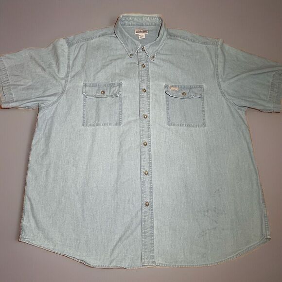 Vintage Carhartt Denim 2XL Denim Shirt 90s Y2K Denim Button Down XXL Work Shirt