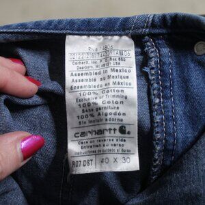 π Vintage Carhartt washed denim bib overalls π Size 40x32 β measurements in photos π§ Rugged workwear style with utility pockets π§Ό Light stains on legs, rust under buckle, small hole on one leg πΈ See all photos closely β exact item shown π‘ Estate sale find β smoke-free home