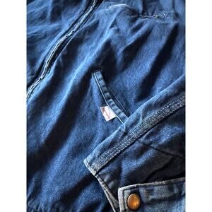 Vintage Carhartt Detroit 80LJ 80’s USA Made Denim Bloody Guts L-XL Trucker Jacket. 100% original. All zippers functional. No rips or holes or repairs needed. Small light stain on sleeve. Excellent vintage condition!