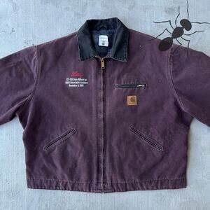 Vintage Carhartt J97 BRG burgundy Detroit work wear jacket. Great color! Sought after burgundy color. Has embroidery. Light fading throughout. Few marks on shoulder. Measures 30x27.5. Please check measurements before purchasing. I do my best to show any flaws in pictures. Quick shipping! Bundles encouraged!