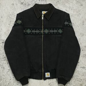 Vintage Carhartt JQ0405 Faded Black Aztec Jacket Size Medium - Large
