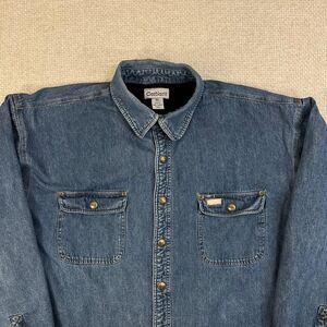Vintage Carhartt Jacket Men's XL Tall Blue Denim Fleece Lined Shacket S115DST
