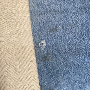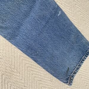worn stained worked condition This product is a pair of vintage Carhartt men's jeans in a relaxed fit, straight leg style, with a classic blue denim color. The jeans feature a traditional 5-pocket design, zip and button closure, and are made of cotton denim fabric. With a rise and inseam of 30 inches, these jeans are comfortable and easy to care for, making them suitable for all seasons. The Carhartt brand adds a touch of durability and Americana flair to these timeless denim pants.