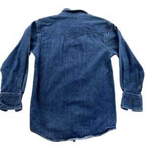 Vintage Carhartt Mens Denim Shirt Small Snap Pearl Blue Long Sleeve Western