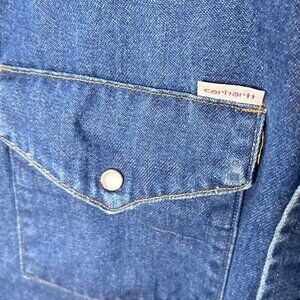 Vintage Carhartt Mens Denim Snap Button Western Union Made Shirt - Sz L