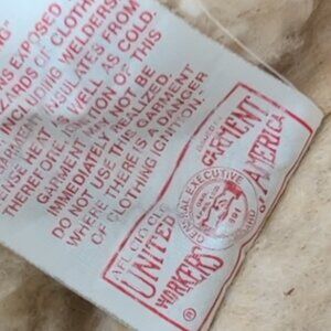 This vest is in good overall condition. It's a work vest and it shows. No rips or holes, but does have some stains and marks on the front. This vintage vest is built to last and keep you warm. The sherpa lining is in great shape. This was made in the USA!