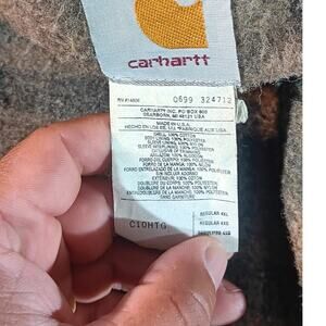 Rugged vintage Carhartt work jacket in a hard-to-find green duck canvas. Made in the USA and union produced (UFCW label), this jacket is built tough with Carhartt’s classic durability. Features blanket lining for warmth, snap front with zipper closure, two chest zipper pockets, and two large front flap pockets. True vintage piece with authentic workwear wear and fading, adding character. Tagged size 4XL Regular (C10HTG), fits oversized for layering. A great collectible for Carhartt, workwear, or streetwear fans.