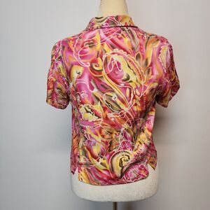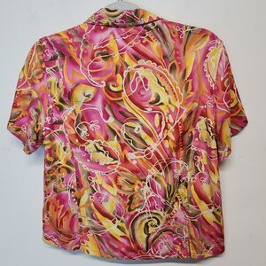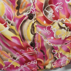 Vintage Caribbean Joe Tropical Button Down Shirt Size M Pink Yellow Rayon Vaca