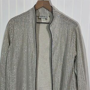 Vintage Caribou Shimmer Cardigan Size 18 | Silver Metallic Ribbed Disco Jacket