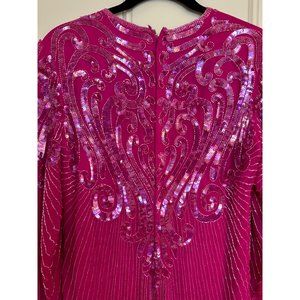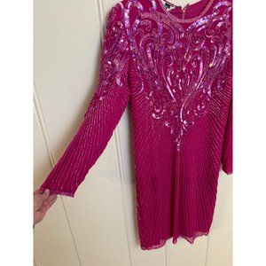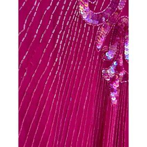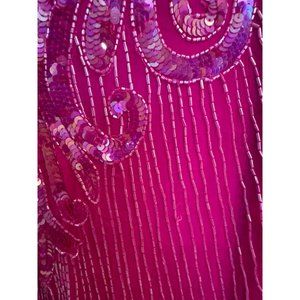 Vintage Carina Pink Silk Hand-Beaded Dress XL See Measurements Glam Hollywood