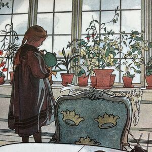 Vintage Carl Larsson Melamine Rectangle Serving Tray Flowers On The Windowsill