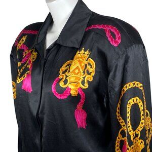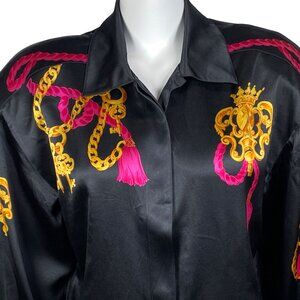 Vintage Carlisle 100% Silk Shirt Size 14 Gold Chain Key Print Button Up