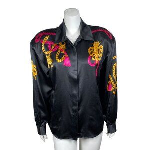 Vintage Carlisle Black 100% Silk Shirt Womens Size 14
