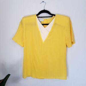 Vintage Carlisle 80's 100% Silk Short Sleeve Yellow Button Back Blouse Shirt