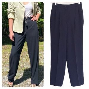 Vintage Carlisle High Rise Pleated Wool Trousers Navy Blue Size 10