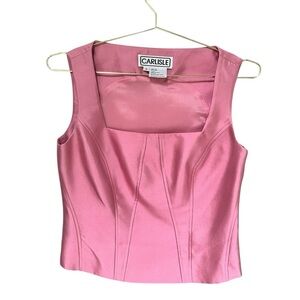 Vintage Carlisle Silk Bustier Corset Structured Tank Top in Pink Rose, Size 8
