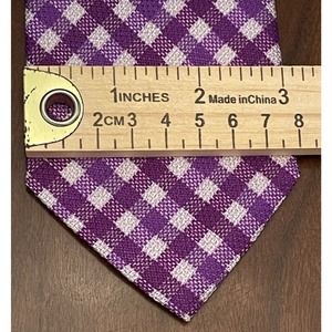 Elevate your style with this stunning Carlos Nieto men's necktie. Made of 100% silk, this classic width tie features an eye-catching plaid and abstract design in shades of purple and multicolor. Perfect for any occasion, this designer tie is a must-have for men who want to make a statement with their wardrobe. Whether you're dressing up for a wedding or adding some flair to your work attire, this tie will have you looking sharp and confident.