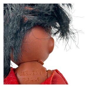 These Carlson dolls, adorned in faux leather dresses with fringe detail, evoke the essence of traditional craftsmanship. Their soulful eyes and intricate attire speak of stories untold, encapsulating a timeless charm that resonates with collectors and enthusiasts alike. Each doll stands as a miniature embodiment of cultural artistry.