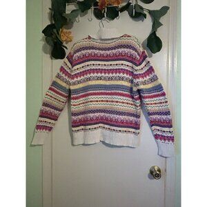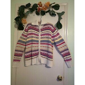 Vintage Carly St. Claire Size XL Cream + Multicolor Fair Isle Zip Front Cardigan