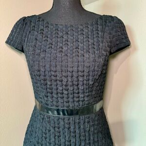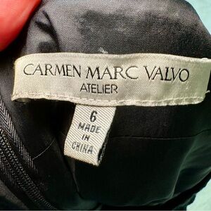 Vintage Carmen Marc Valvo black puckered sheath dress with patent trim size 6