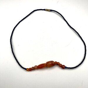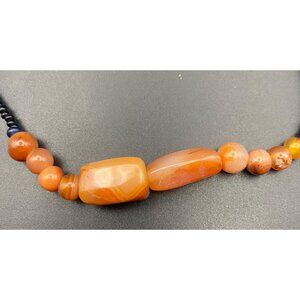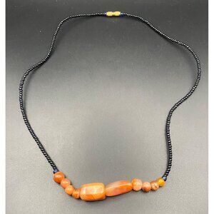 Vintage Carnelian Black Glass Beaded Necklace Orange Agate Stones Boho Unisex 21