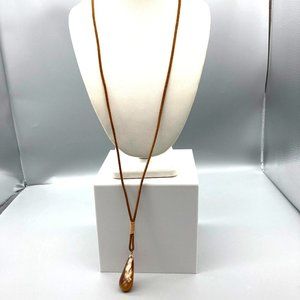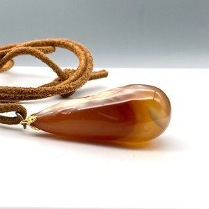 Vintage Carnelian Faceted Teardrop Pendant Necklace, Natural Polished Gemstone on Suede Leather Cord