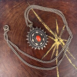 Vintage Sterling silver 935 Carnelian necklace. High silver content than 925. Gothic details. No makers mark but marked State of Israel