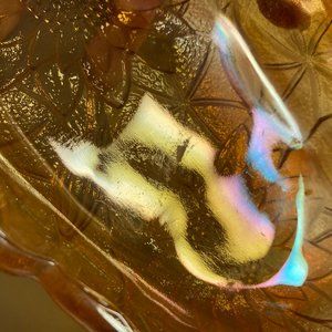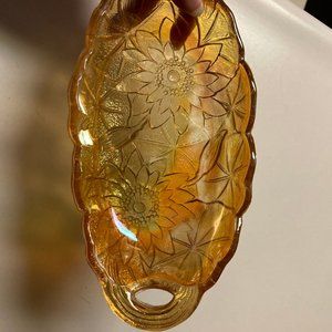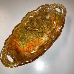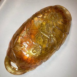 Vintage Carnival Glass Marigold/Sunflower Iridescent Oval Dish w/Handles